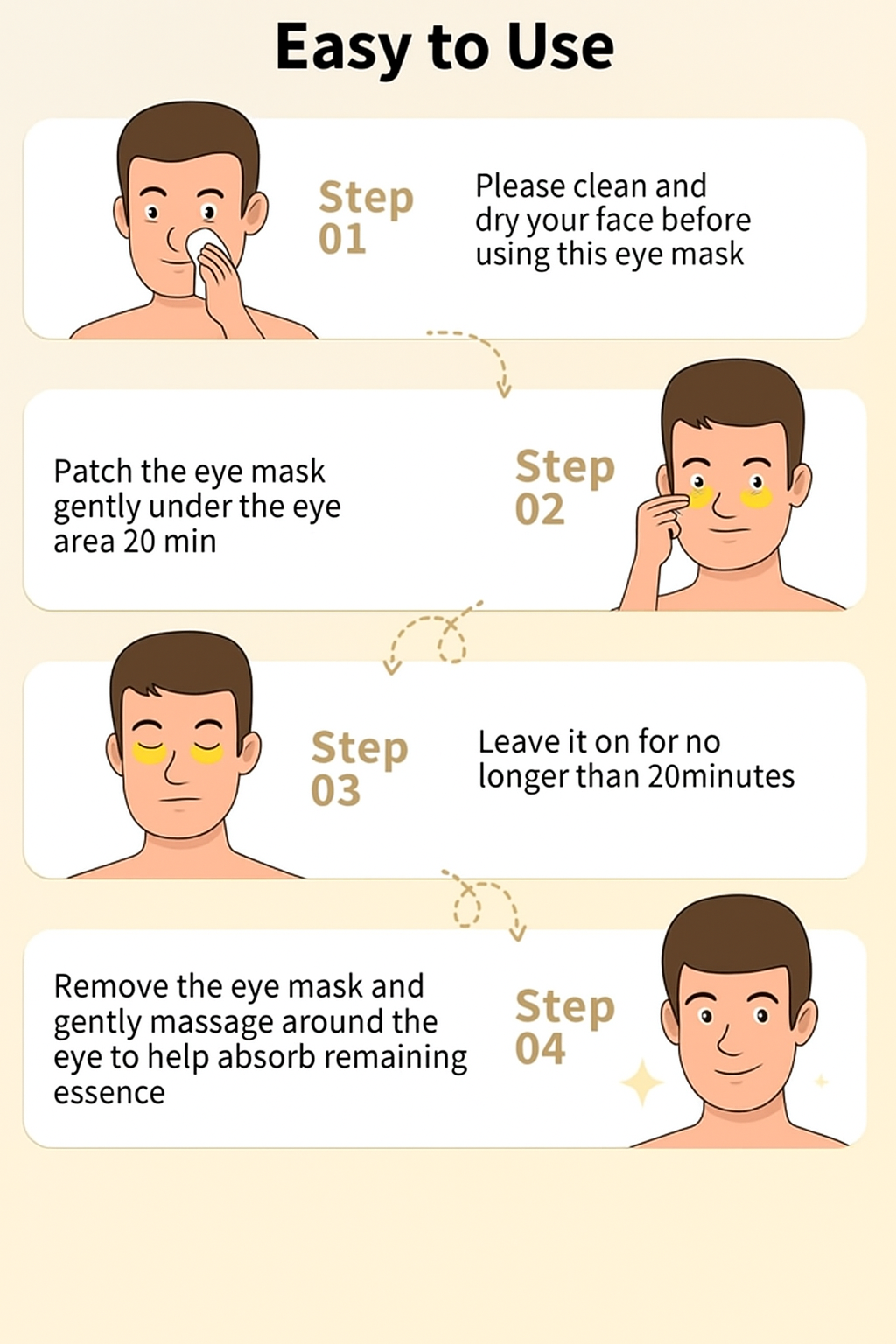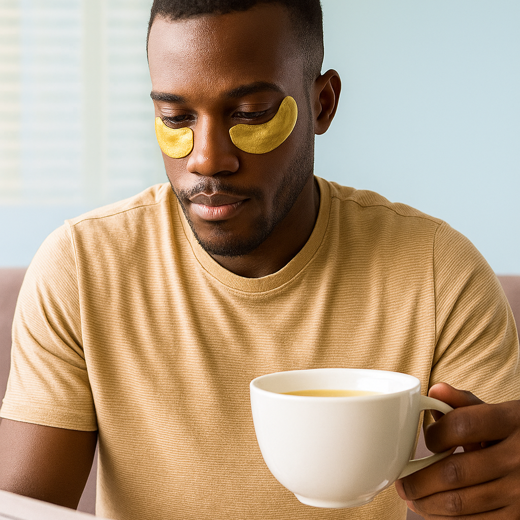 - Apply the Gold Eye Mask under the eyes.